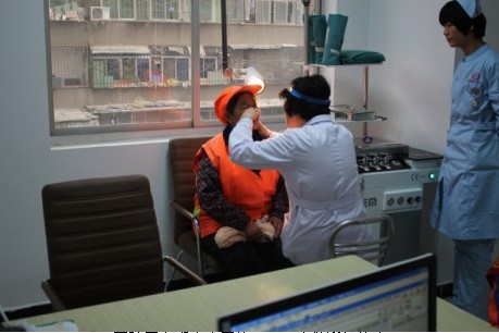 医院耳鼻喉医生正为环卫工人做详细检查