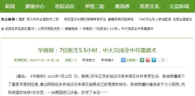 (摘自:华商报2015年7月22日 文:韩艳)风华正茂的他还没有来得及好好享受生活,就被病魔推下了重度耳聋的险境;事业刚刚起步的他还没来得及施展自己的理想和抱负,就被病魔纠缠奔波于大小医院;然而绝望的他被7位医生、一台进口设备,改变了命运……