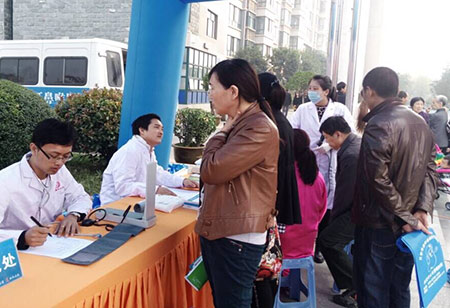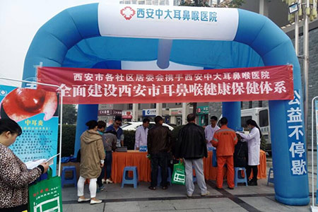 以西安中大耳鼻喉医院为代表的西安市多家医疗机构的100多名医务人员走上街头,为上千名市民进行健康查体和疾病宣传。