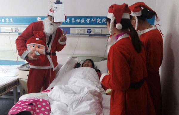 怀着满满的诚意与祝福,西安中大耳鼻喉医院希望通过圣诞老人送礼这一惊喜,让医院所有的住院患者,都能感受到节日的气氛,让他们即使因病痛不得不在医院度过节日,也能和所有其他人一样过节,甚至感觉更好,不留遗憾,