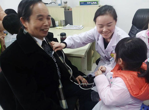 认真为父母检查的“小医生”
